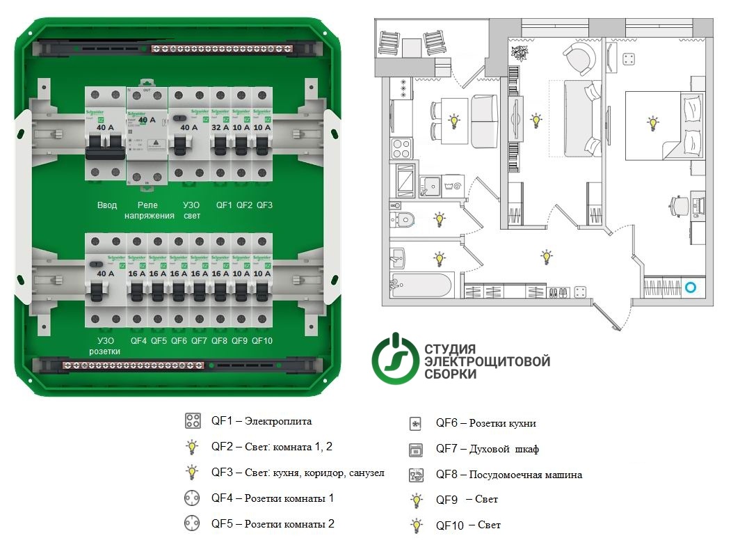 Идеально для: Владельцев двухкомнатных квартир с современной бытовой техникой, семей с детьми, электромонтажных бригад для типовых и премиальных проектов.